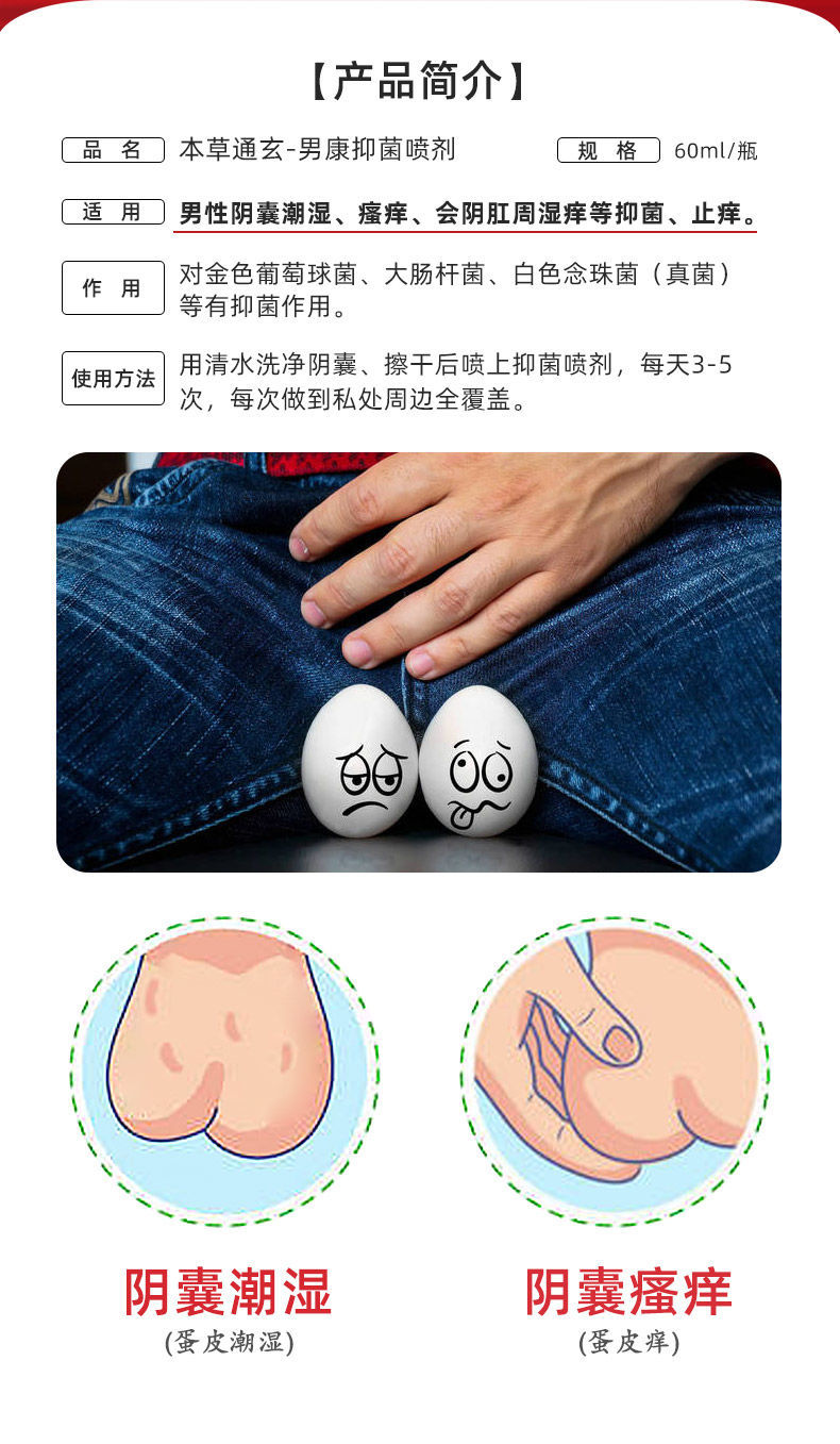 男性陰部瘙癢陰囊潮濕蛋蛋汗多異味大就用本草通玄男康抑菌噴劑一噴就爽
