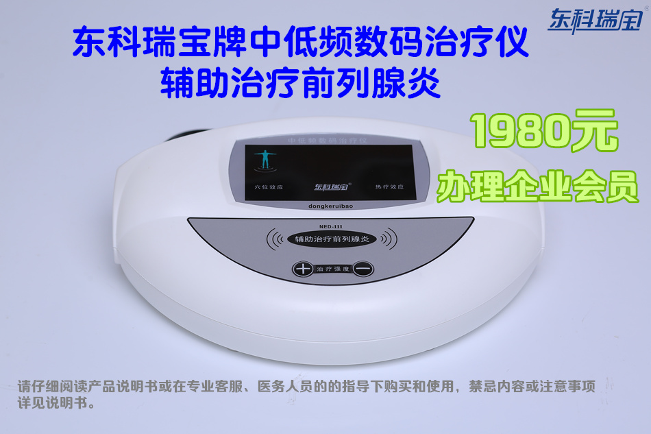 (2019新款)東科瑞寶牌前列腺治療儀器系列產品(輔助治療前列腺炎專用中低頻數碼治療儀),為國家二類醫(yī)療器械治療型產品,由治療儀主機、導電理療電極片、DC導線、前列腺儀器設備專用固定帶等配件耗材組成。