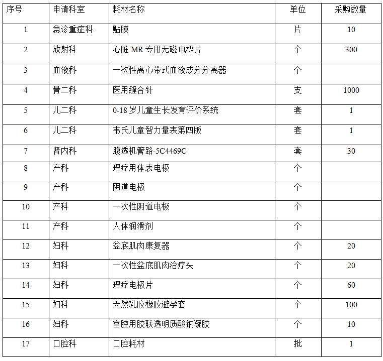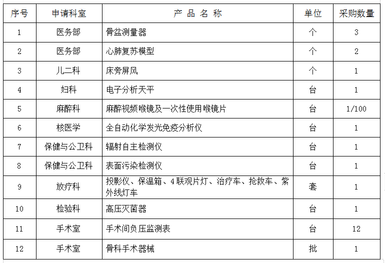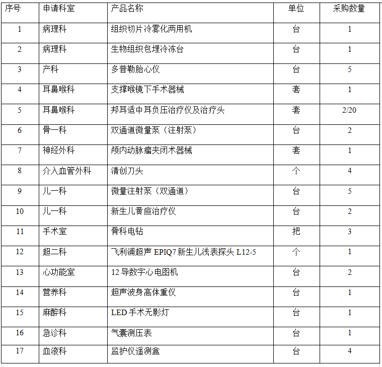 我院擬對(duì)以下醫(yī)療器械進(jìn)行采購,請(qǐng)符合條件的供應(yīng)商報(bào)名: