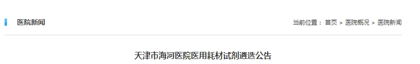 不久前,天津市海河醫(yī)院發(fā)布《醫(yī)用耗材試劑遴選公告》,為病理、麻醉、骨科等26種耗材試劑遴選供應商。其中供應商資質(zhì)明確要求:供應商為所供產(chǎn)品的全國總代或天津一級代理,而且所供產(chǎn)品在天津市三甲醫(yī)院在用。