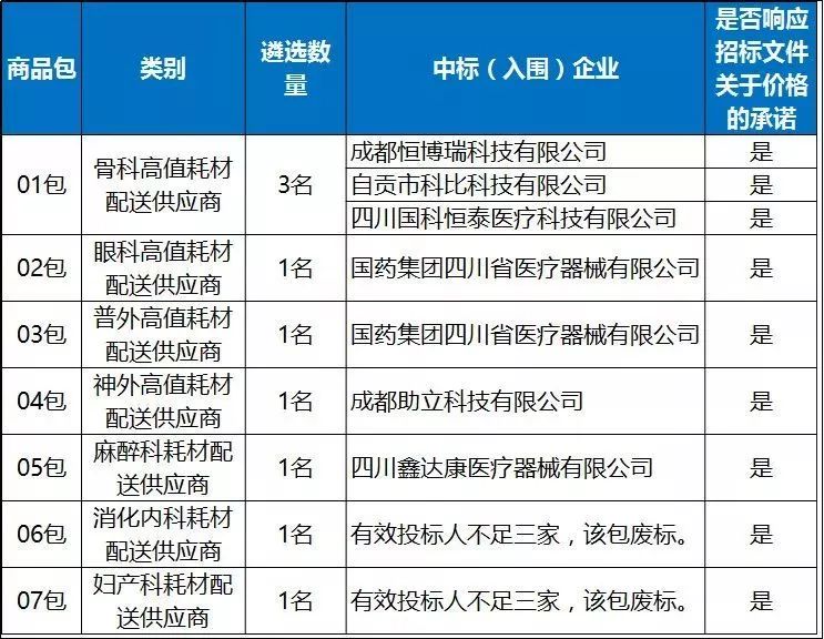 四川省,《都江堰市第二人民醫(yī)院 2018年遴選醫(yī)用(高值)耗材配送供應商項目 (***批)中標公告》,都江堰市第二人民醫(yī)院2018年7大類共計153種耗材配送商遴選,除骨科耗材外,其余每類耗材只遴選1個配送商。而最終中標結果中,僅國藥就拿下2大類耗材配送權!