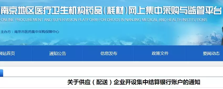 明確要求南京全市各定點(diǎn)醫(yī)藥機(jī)構(gòu)的醫(yī)用耗材及藥品收支,須納入市醫(yī)藥集中采購(gòu)保障中心設(shè)立的專(zhuān)門(mén)賬戶集中結(jié)算管理。按照全市統(tǒng)一部署和安排,請(qǐng)各企業(yè)對(duì)應(yīng)各自供貨的省、市屬三級(jí)醫(yī)療機(jī)構(gòu)結(jié)算賬戶銀行,于9月30日前開(kāi)設(shè)醫(yī)用耗材及藥品收支專(zhuān)門(mén)賬戶、辦理結(jié)算系統(tǒng)專(zhuān)用CA。